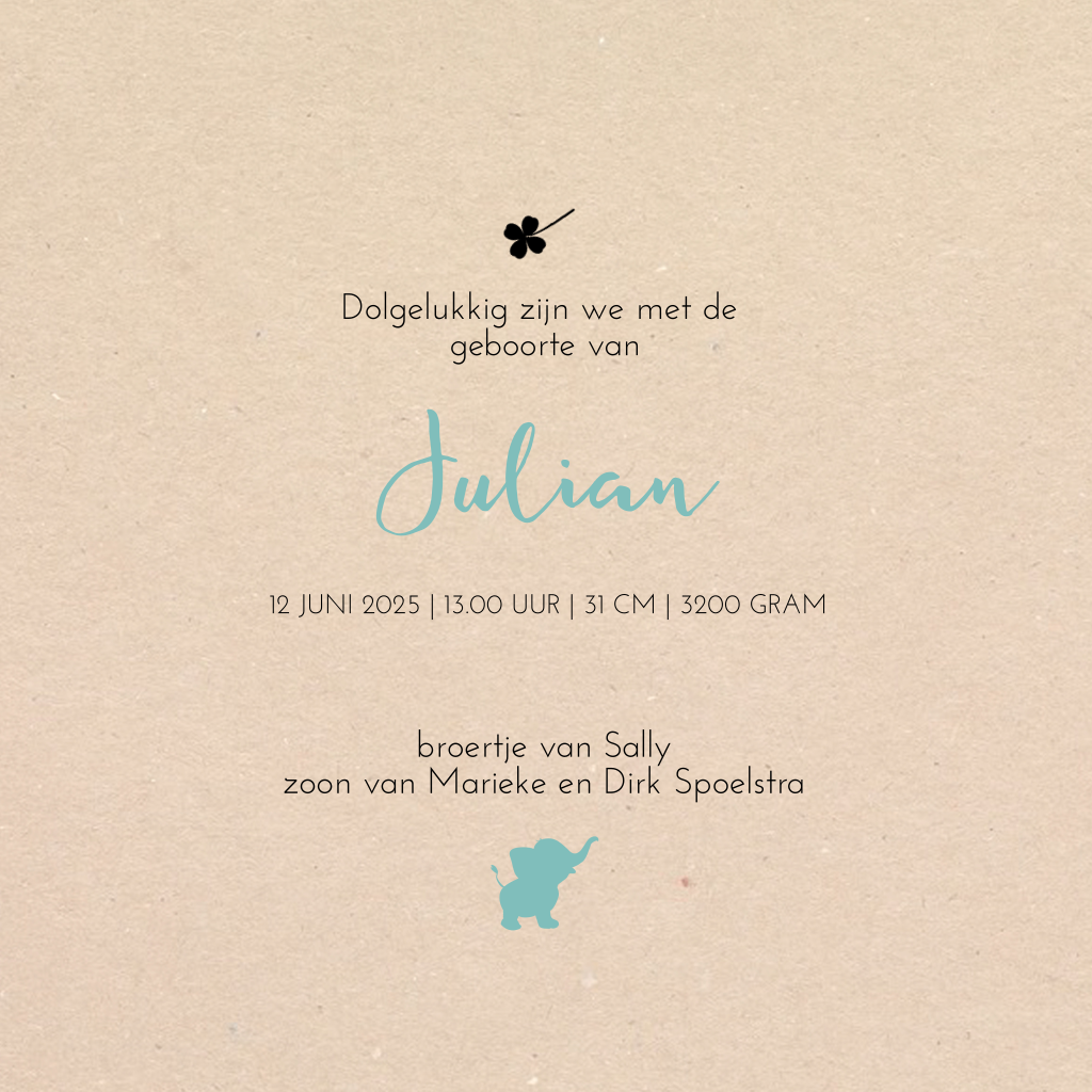 Stoer geboortekaartje voor de geboorte van je tweede zoontje met een hip silhouet van een grote broer die met zijn kleine baby broertje op de bakfiets zit.