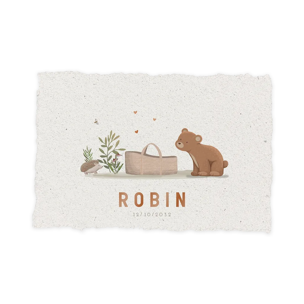 Geboortekaartje handgeschept papier look met beertje en mandje