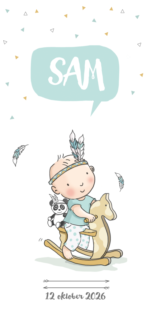 Hippe geboortekaart voor jongen met illustratie