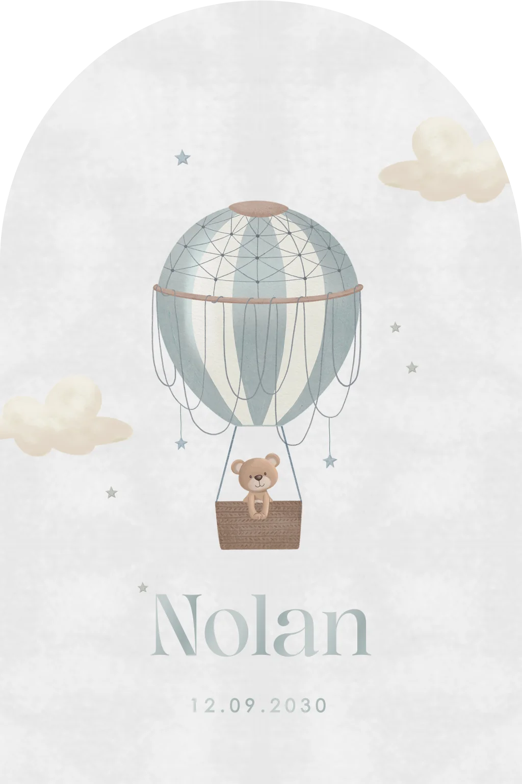 Wat een lief geboortekaartje voor jouw zoon! Het kaartje heeft blauwe tinten. In het midden zie je een luchtballon vliegen tussen de wolkjes. In de luchtballon zit een beertje. Pas het ontwerp naar wens aan in onze online editor.Bekijk ook de unisex variant en de meisjes-variant.