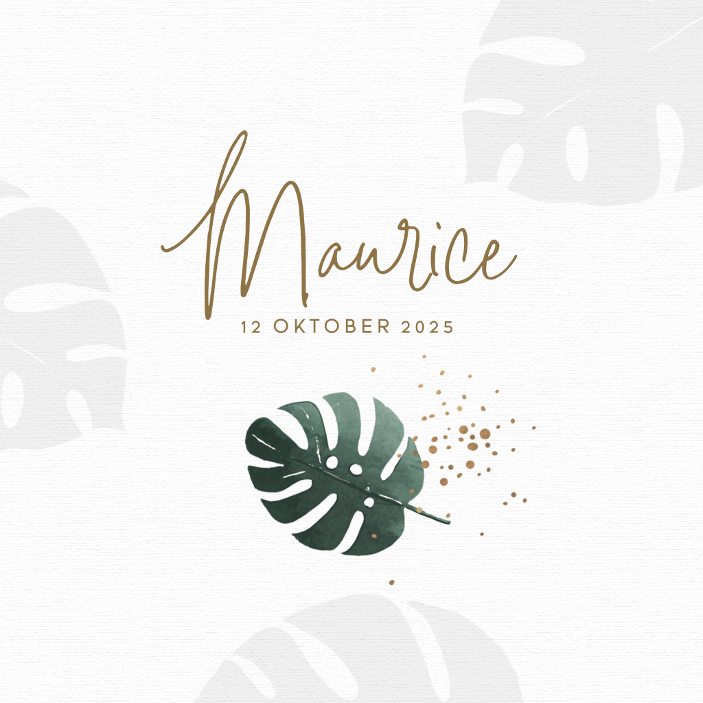 Modern geboortekaartje met blaadjes