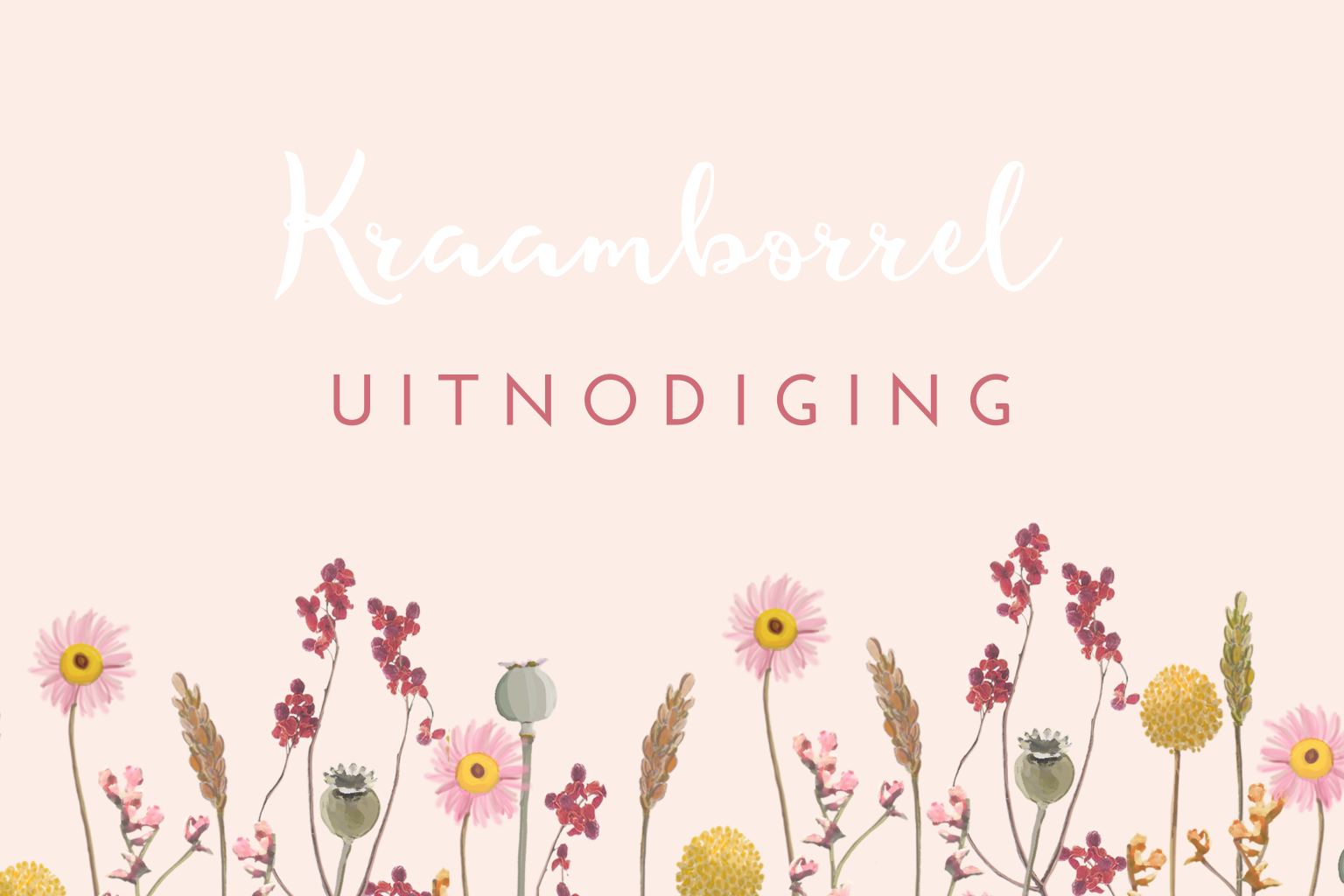 Nodig familie en vrienden uit voor de babyborrel ter ere van de geboorte van jullie dochter met dit lieve kaartje in zachtroze met onderaan een rand van veldbloemen. 'Kraamborrel' staat in goudfoliedruk, voor een extra luxe effect!