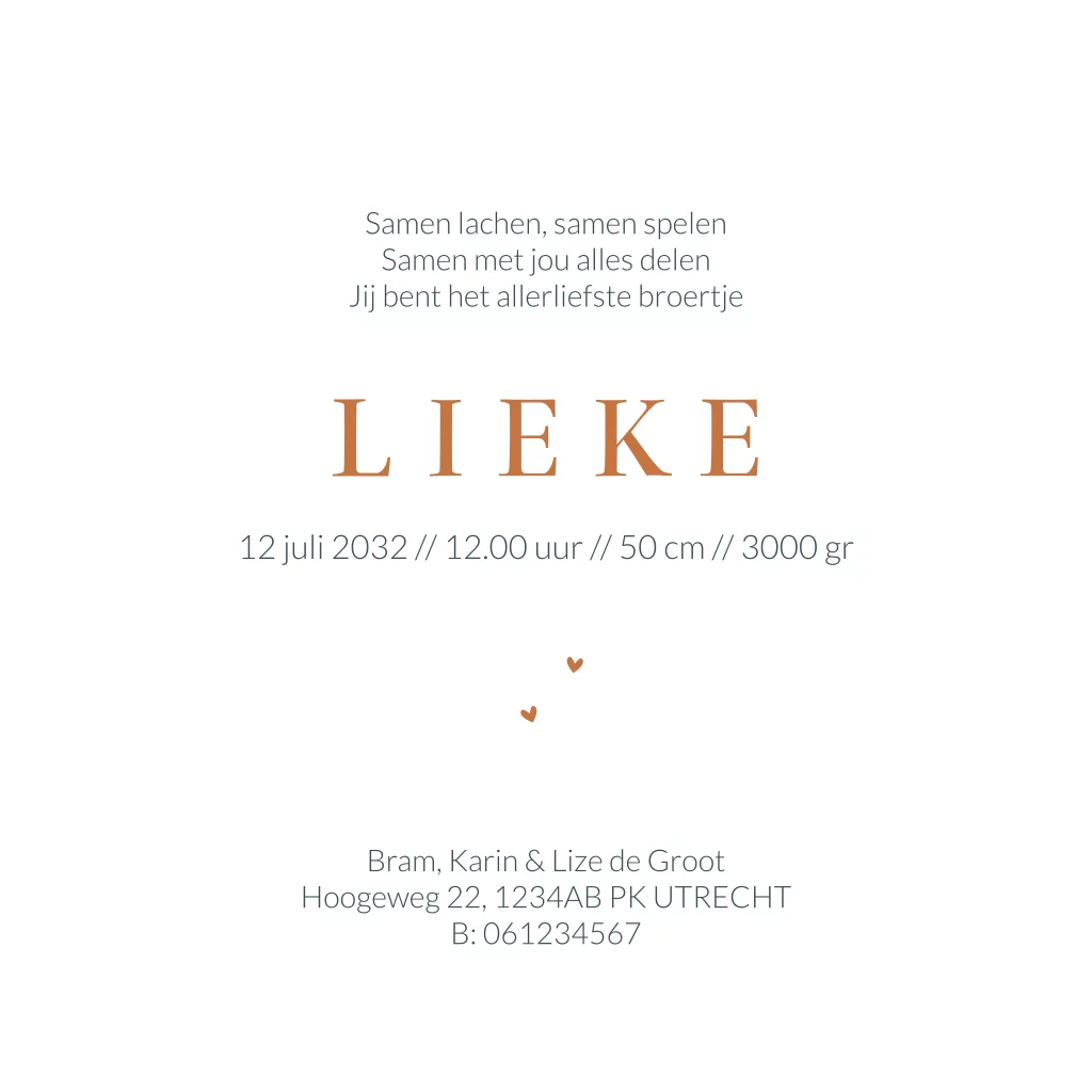 Bruin geboortekaartje zusje met silhouetje van kinderwagen