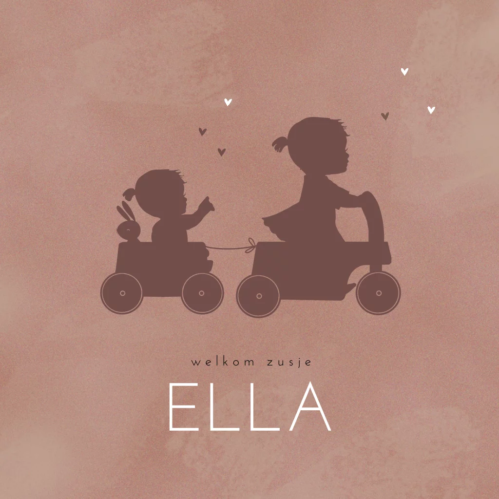 Lief geboortekaartje met silhouetjes en velvet-look voor een zusje