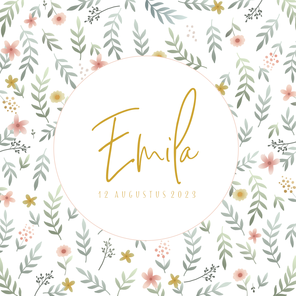 Lief geboortekaartje voor meisje met bloemetjes en takjes