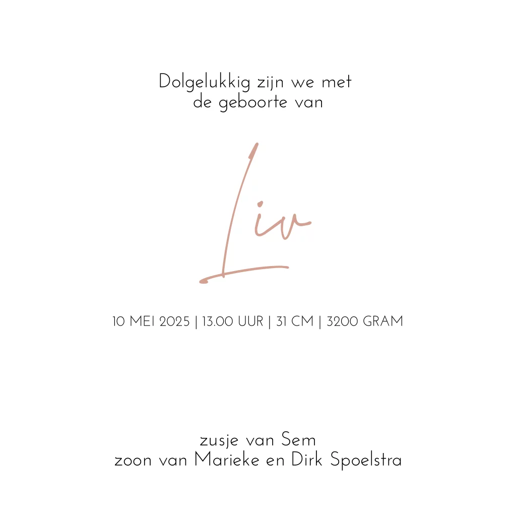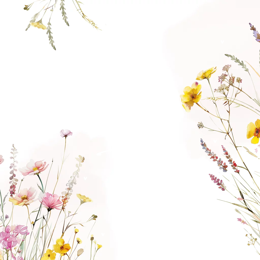 Een vrolijk geboortekaartje voor een meisje. Het kaartje heeft vrolijke veldbloemen met in het midden de naam. De naam wordt gedrukt in roségoudfolie. Op de achtergrond zie je watercolour.