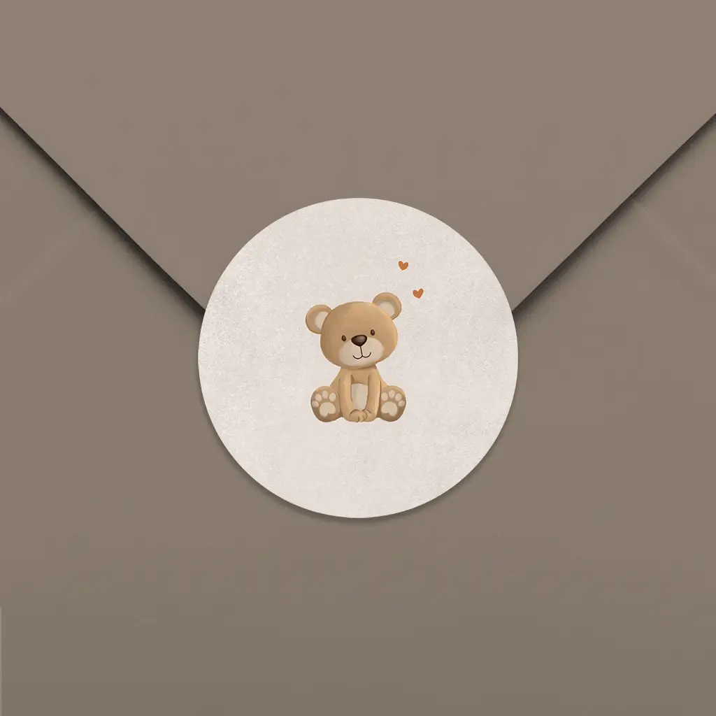 Een lieve sluitsticker passend bij het geboortekaartje voor jullie kleintje. De sticker heeft een lieve illustratie van een teddybeer. Deze sticker past perfect bij het geboortekaartje van designer Anet. Pas de sticker naar wens aan in onze online editor.