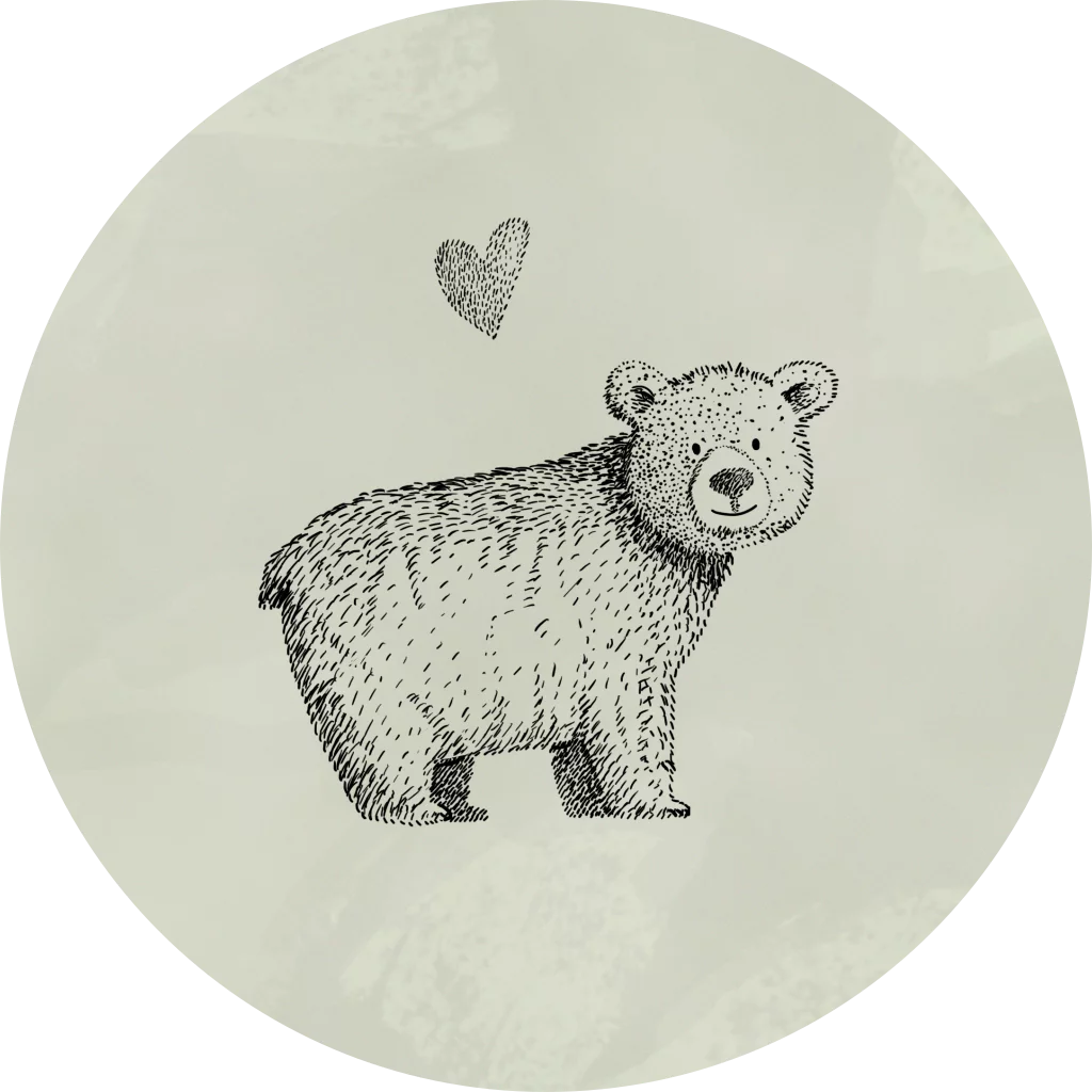 Maak de verzending van het geboortekaartje compleet met deze stoere bijpassende sticker! Op de groene velvet-look achtergrond staat een beer getekend met een lief hartje erboven.