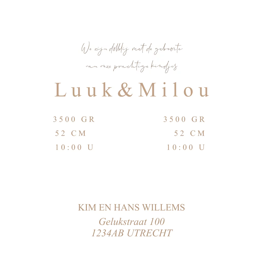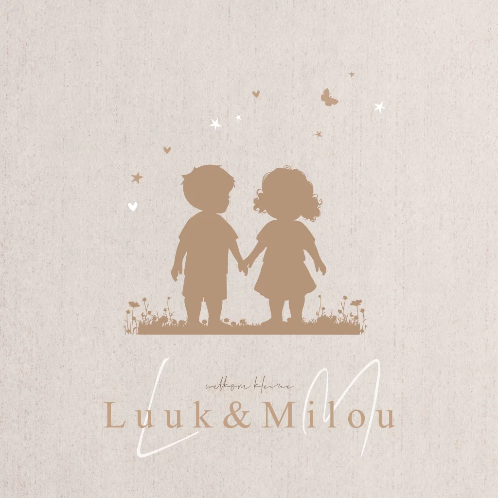 Geboortekaartje tweeling in linnenlook met silhouetjes