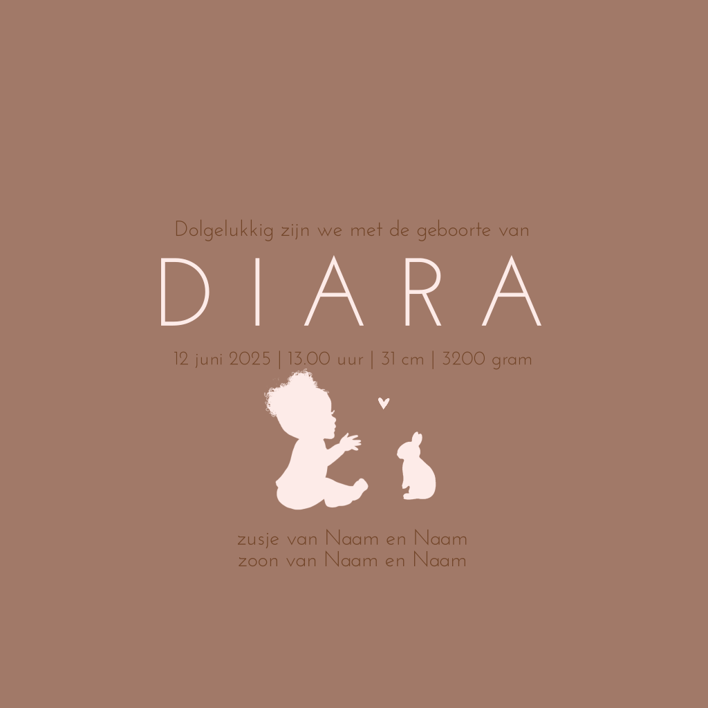 Lieve geboortekaart silhouet klein zusje met haar broertjes