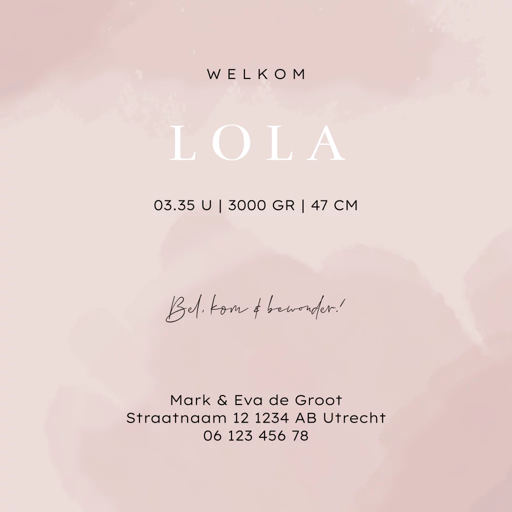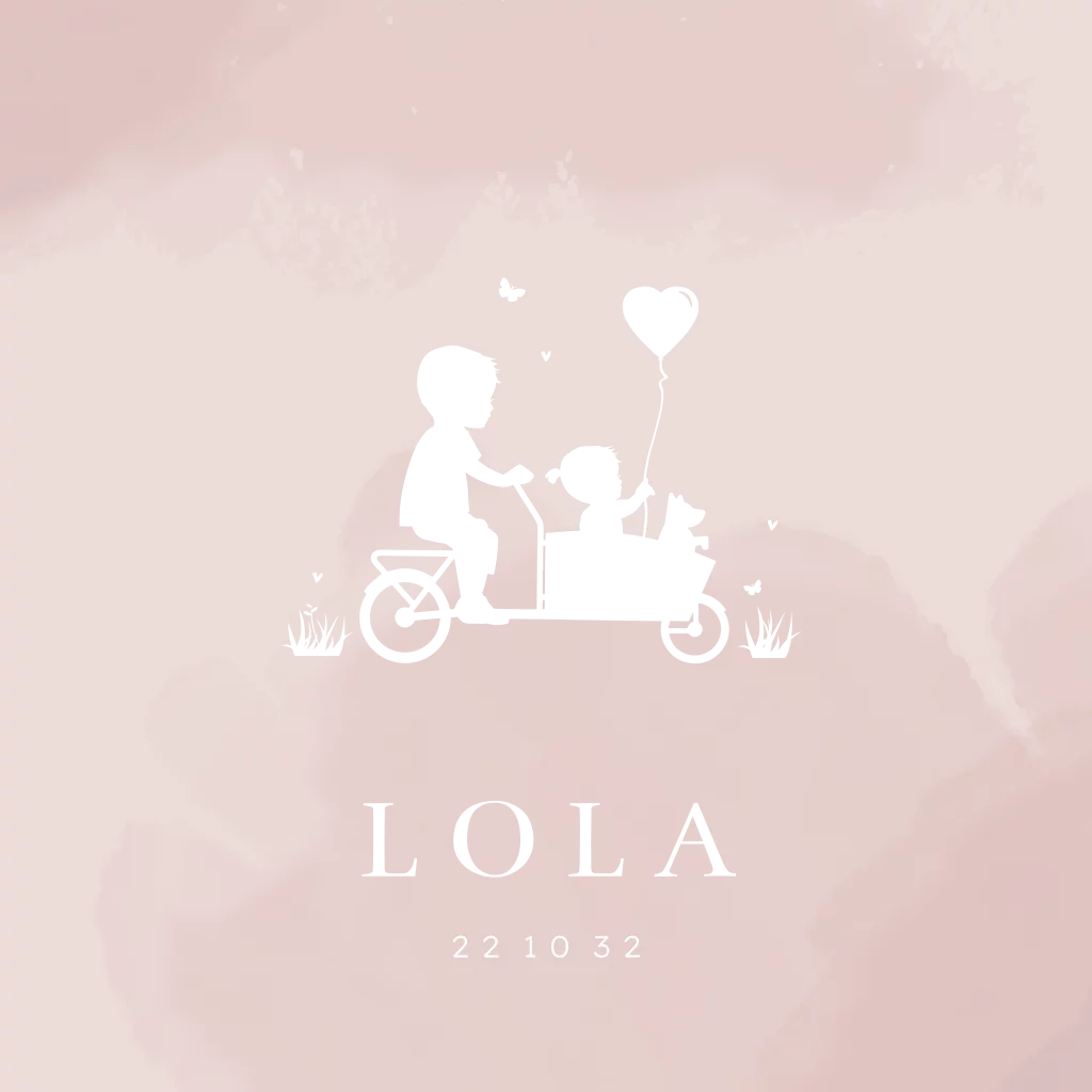 Een schattig geboortekaartje voor jullie tweede kindje. Het kaartje heeft lieve roségoudfolie silhouetjes van jullie eerste zoon en jullie meisje. Het kaartje heeft een roze watercolour achtergrond.
