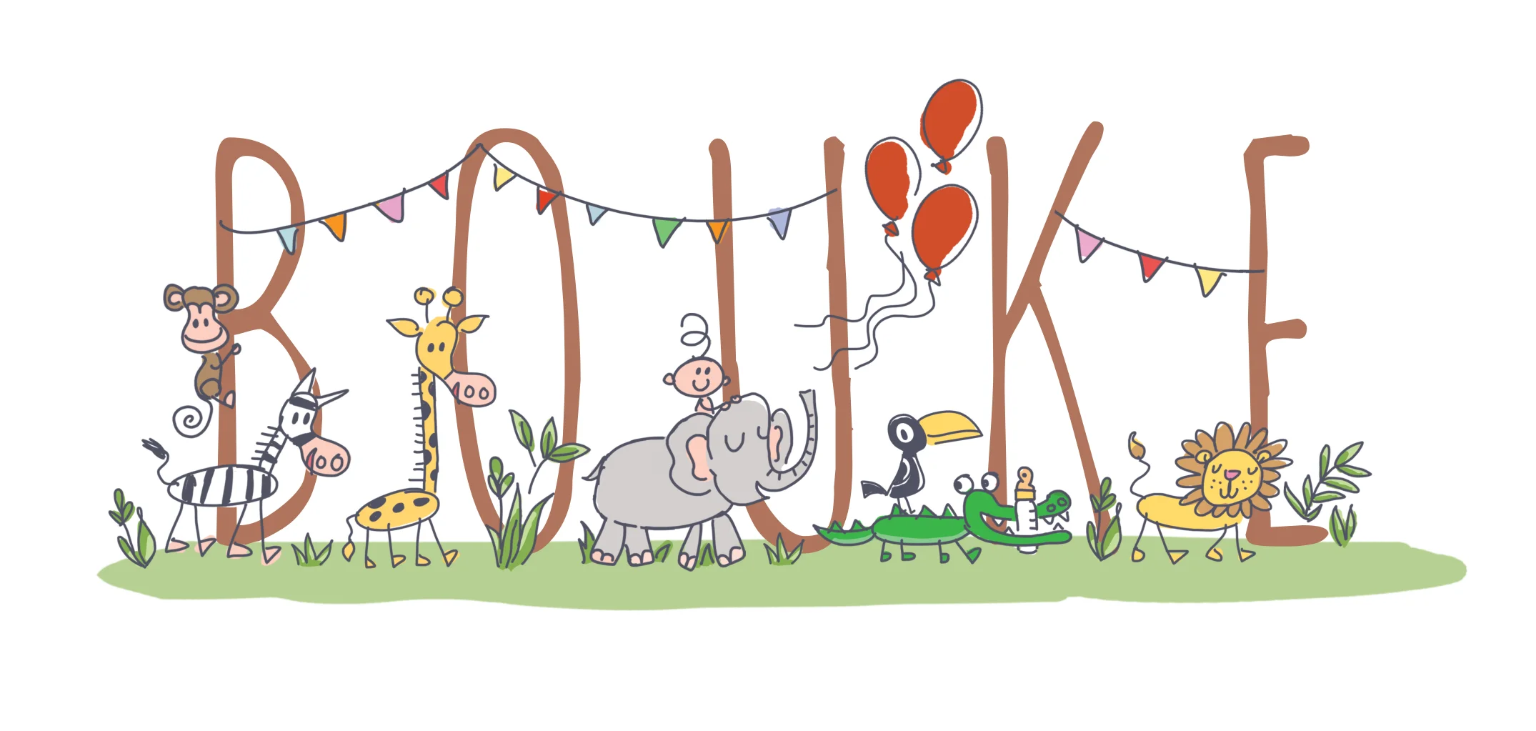 Feestelijk geboortekaartje met naam en illustraties jungledieren
