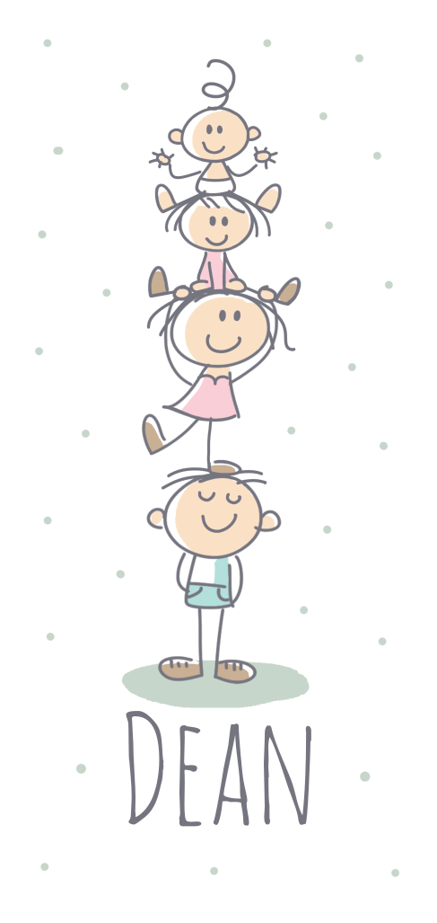 Een uniek langwerpig geboortekaartje voor een jongetje met getekende broertjes en zusjes die op elkaar gestapeld zijn. Maak je eigen gezin kunt maken door alle kinderen te verslepen naar de juiste plek tot je de gewenste samenstelling hebt. Met de vrolijke groene stippen is dit kaartje een echte blikvanger!