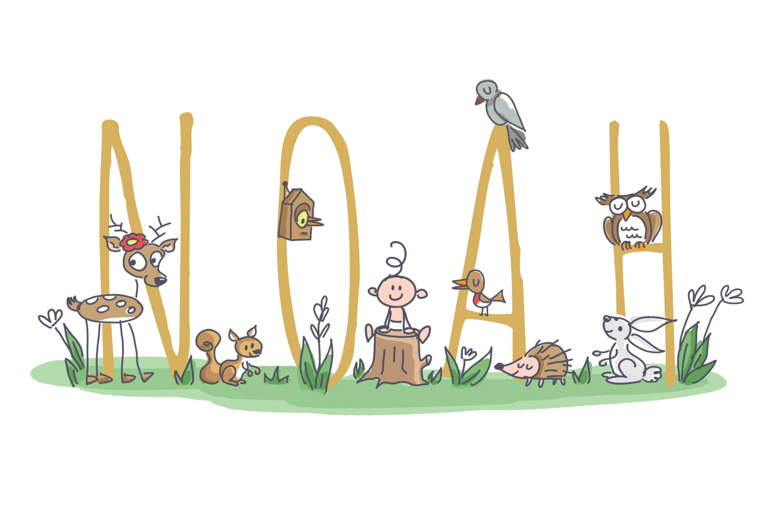 Wat een vrolijk liggend geboortekaartje. Het geboortekaartje heeft in het midden de naam van jullie kindje. en een gele binnenkant. Om de naam heen zie je vrolijke bosdieren, bloemen en een baby. De dieren die je ziet zijn een hert, eekhoorn, duif, uil, egel, konijn, vogel en een kuikentje in zijn vogelhuisje. Pas het kaartje naar wens aan in onze online editor.