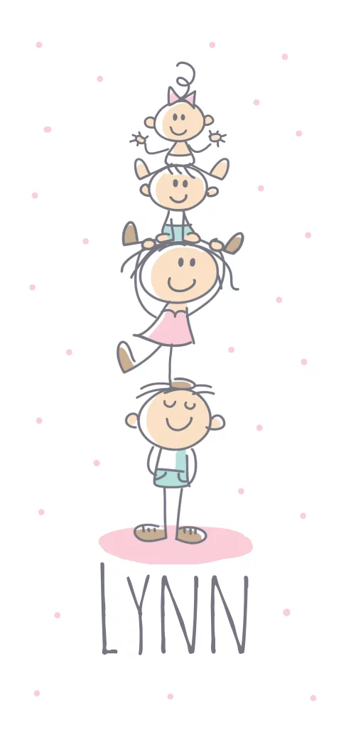 Origineel geboortekaartje voor de geboorte van je jongste dochter. Op dit kaartje staan allemaal leuke tekeningetjes van broers en zussen samen met een meisjes baby. Met dit kaartje kun je je hele gezin samenstellen door alle kinderen op de juiste plek en volgorde te slepen. De hippe stipjes patroon maken dit kaartje helemaal compleet.