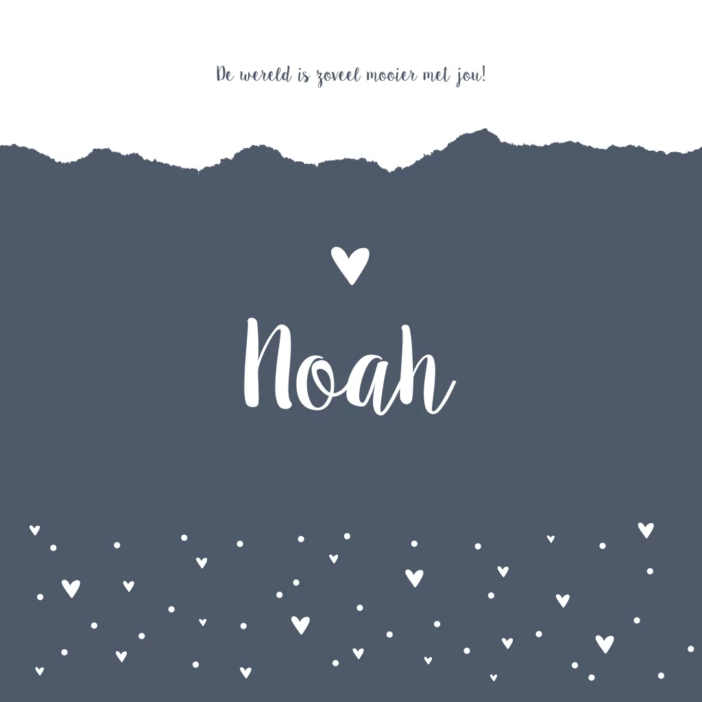 Schattig kaartje voor je pasgeboren zoontje met donker blauwe verf met witte hartjes patroon. Pas de kleuren aan en wijzig de teksten om zo je kaart écht uniek te maken!