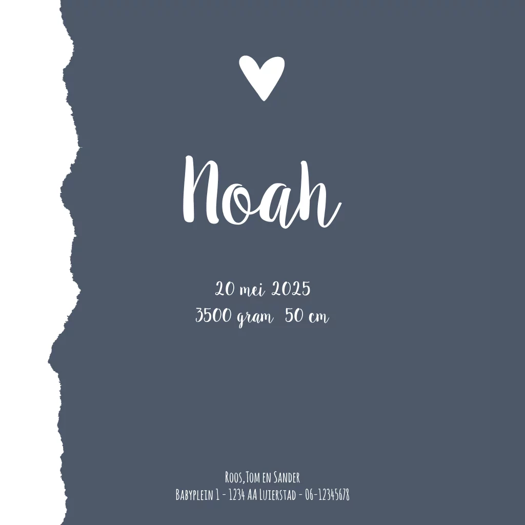 Lieve geboortekaartje voor een jongetje met blauwe verf en hartjes