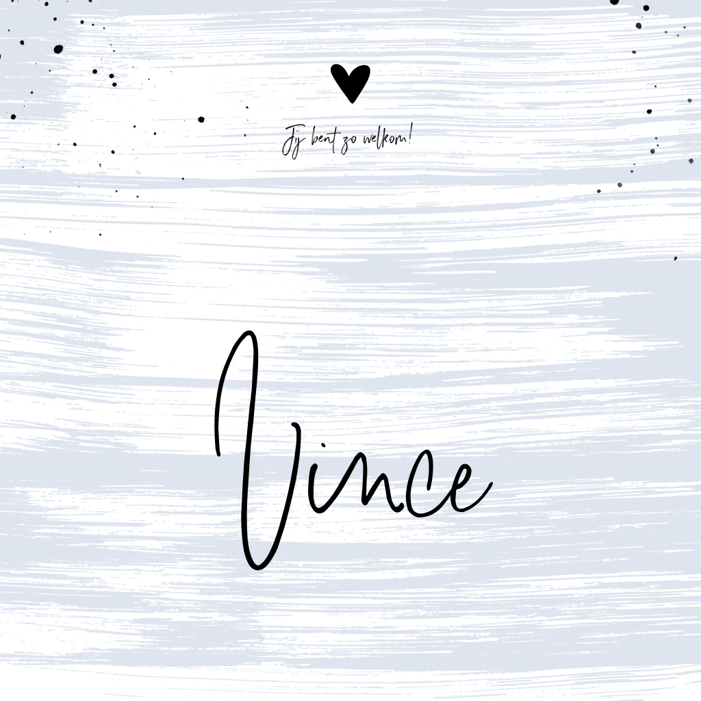 Stoere kaart voor je pasgeboren zoon met zacht blauwe aquarel verf strepen patroon op de achtergrond. De zwarte stipjes en hartje maken dit kaartje helemaal af!