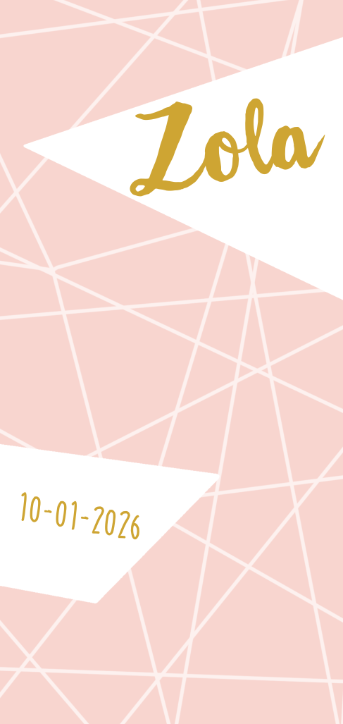 Geometrisch hip geboortekaartje voor een meisje met roze en goudlook.