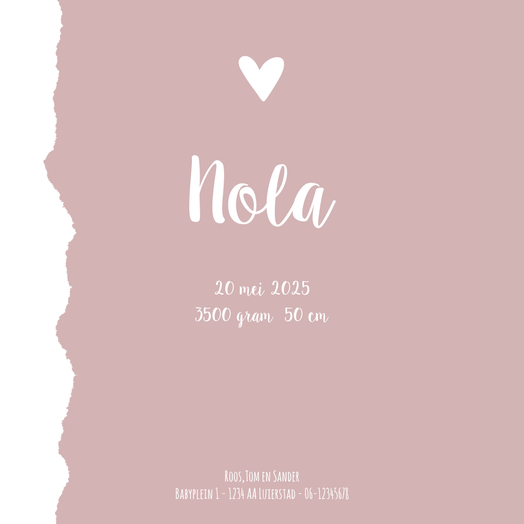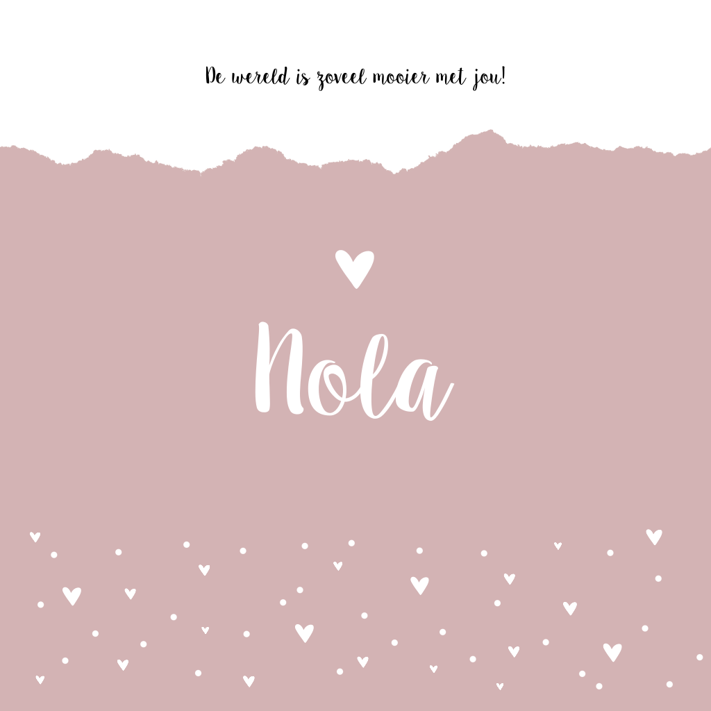 Schattig geboortekaartje voor meisje met oud roze verf en hartjes