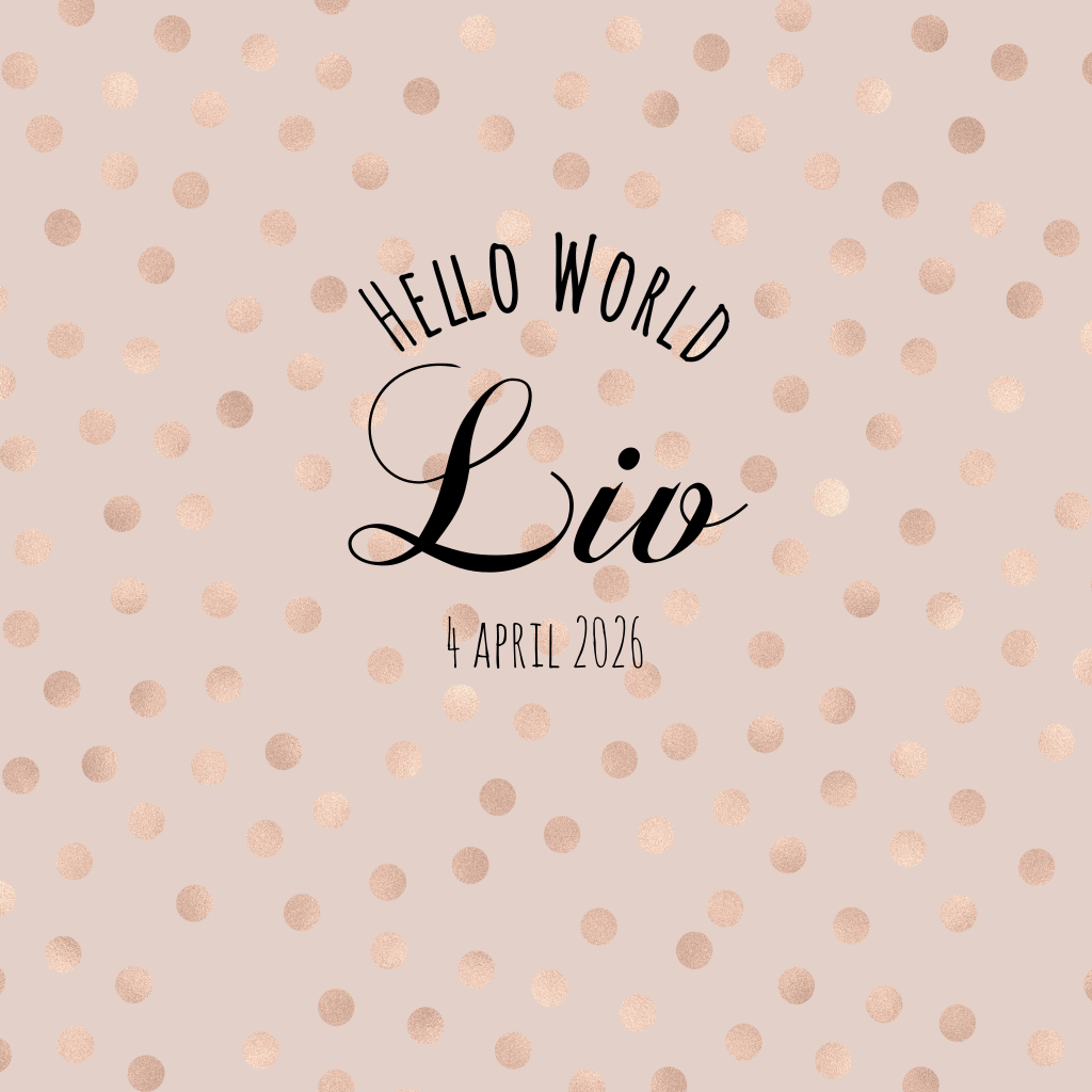 Trendy geboortekaartje voor meisjes met roze en stipjes in rosé-goudlook.