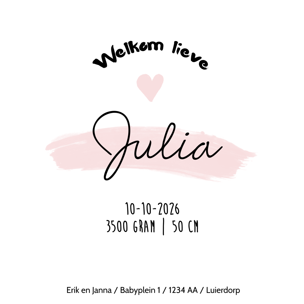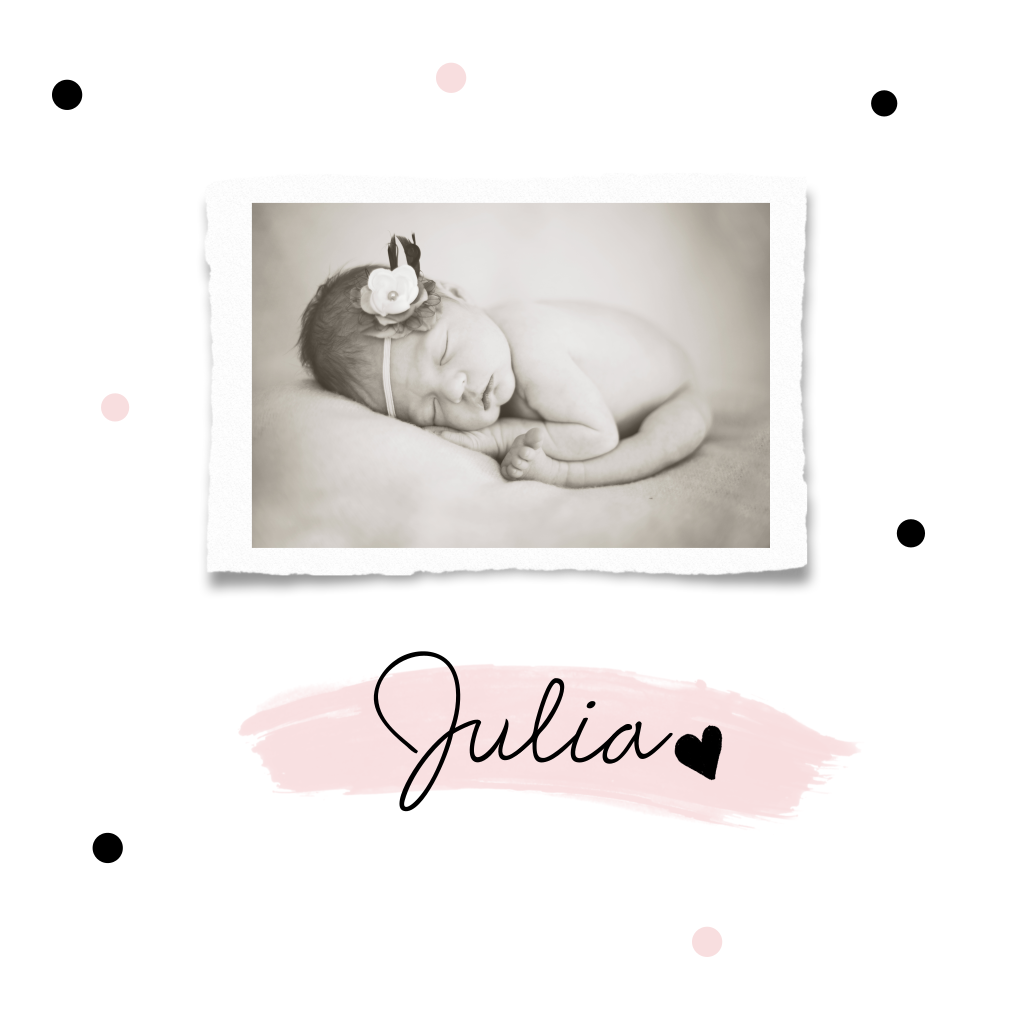 Trendy meisjes geboortekaartje met pastelroze waterverf en foto.