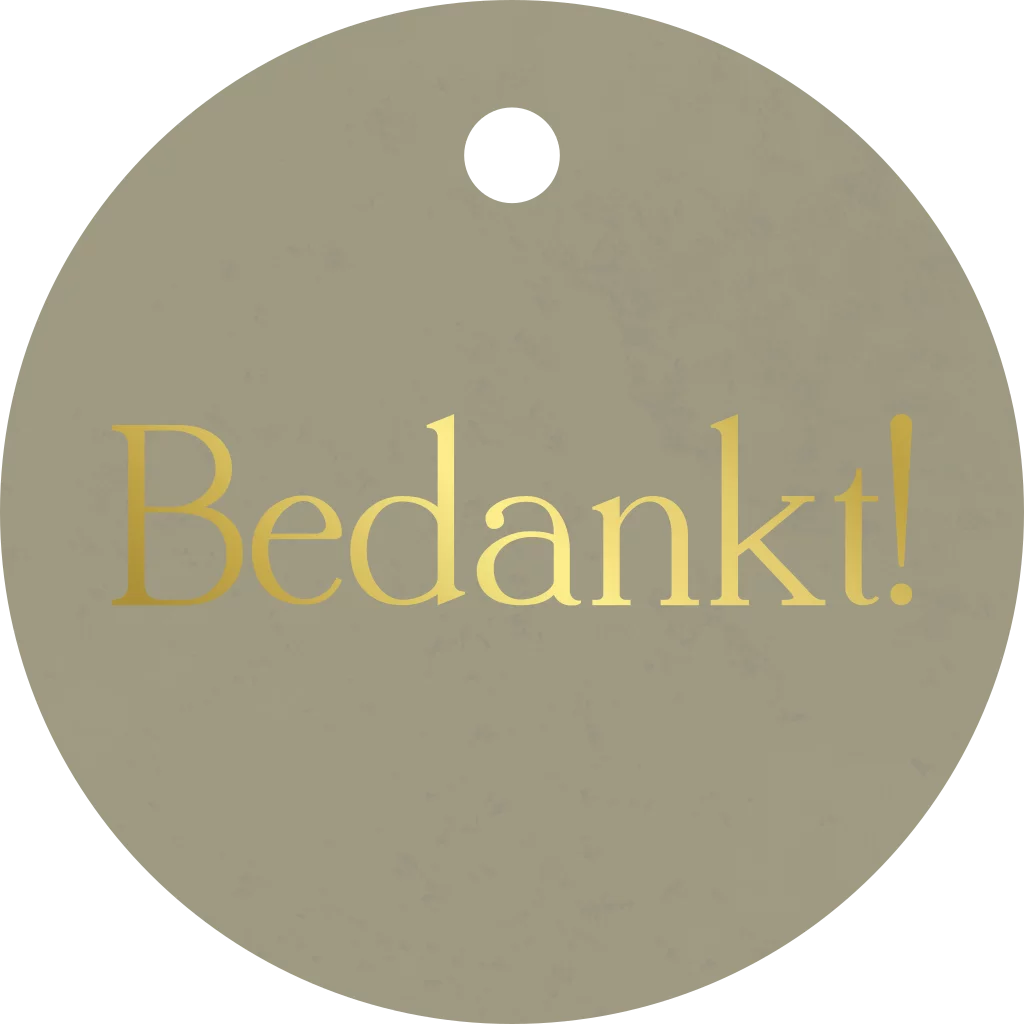 Wat een schattig labeltje! Het labeltje heeft een groene achtergrond met daarop goudfolie letters. Bewerk het cirkel labeltje in onze online editor en maak hem volledig naar je eigen wensen.