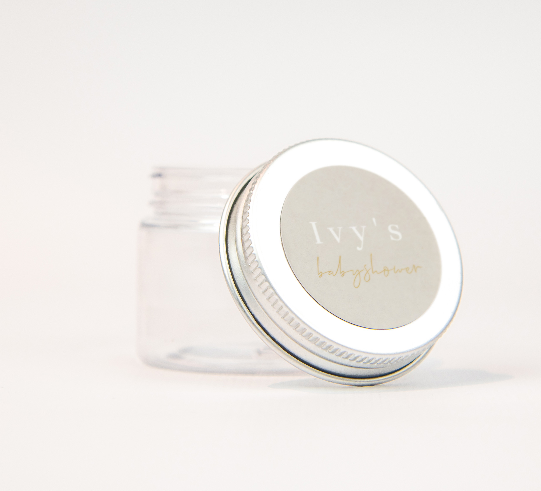 Een sticker met beige achtergrond en eigen tekst. Tof voor op een bedankje of ter versiering. Pas het ontwerp naar wens aan in onze online editor.