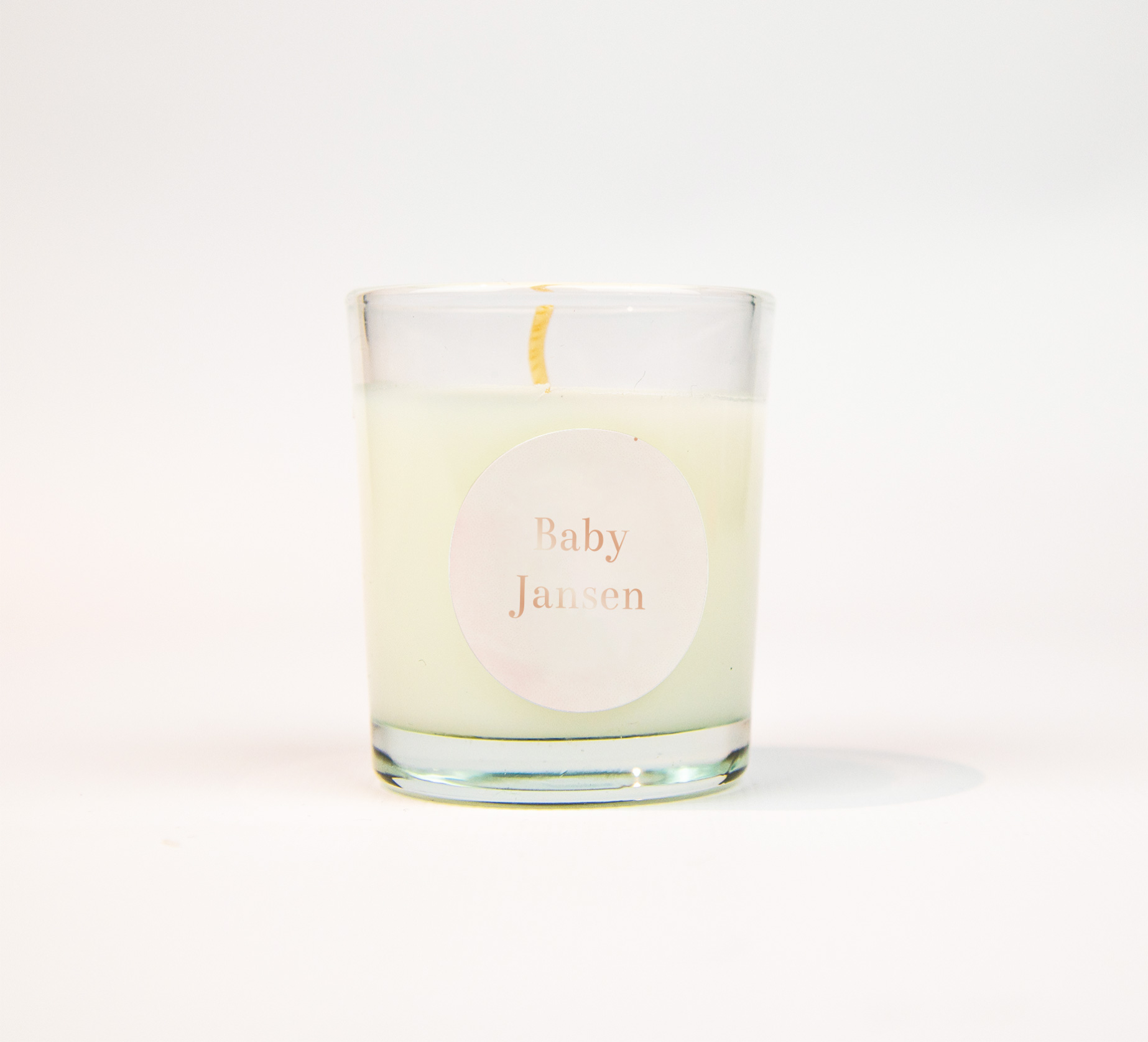 Een sticker met roze watercolour achtergrond en roségoudfolie tekst. Tof voor op een bedankje of ter versiering. Pas het ontwerp naar wens aan in onze online editor.