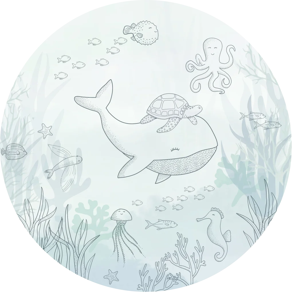 Maak de kinderkamer extra feestelijk met een behangcirkel! Het thema van deze behangcirkel is de onderwaterwereld.