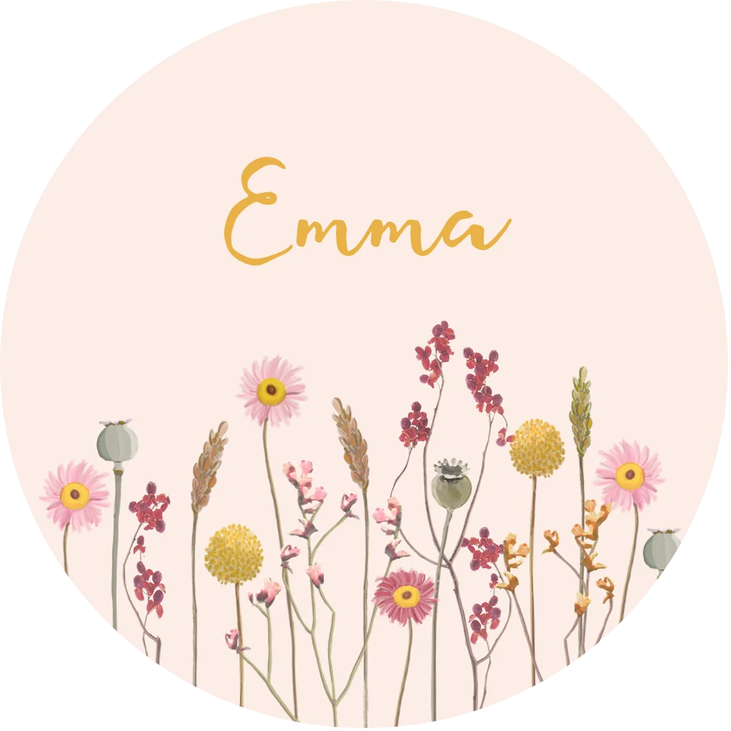 Maak de kinderkamer extra feestelijk met een behangcirkel! Deze behangcirkel heeft een lichtroze achtergrond met de illustraties van bloemen.