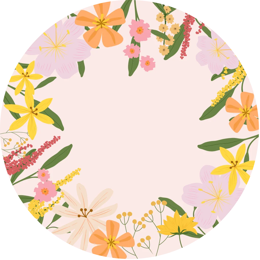 Maak de kinderkamer helemaal af met een behangcirkel! Dit is een kleurrijke behangcirkel met illustraties van bloemen op een lichtroze achtergrond.