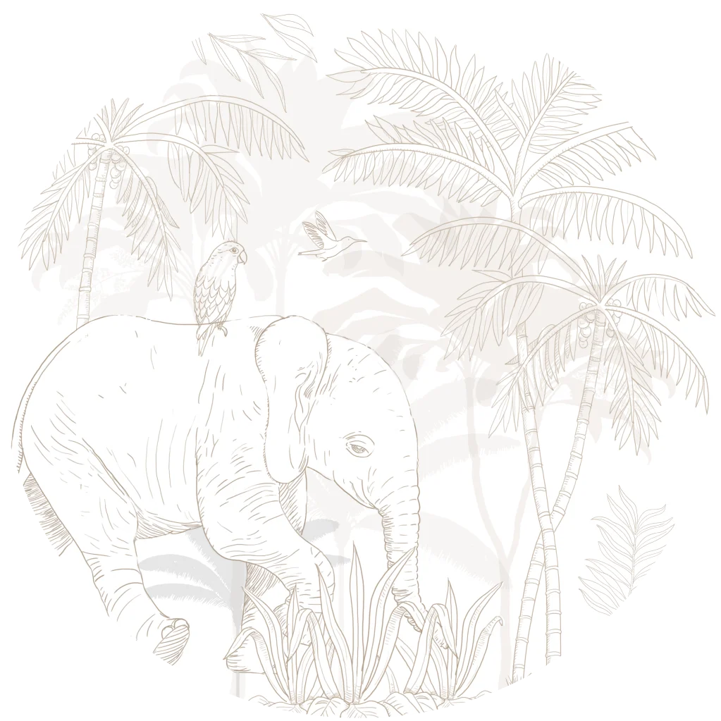 Maak de kinderkamer extra feestelijk met een behangcirkel! Het thema van deze beige behangcirkel is bosdieren.