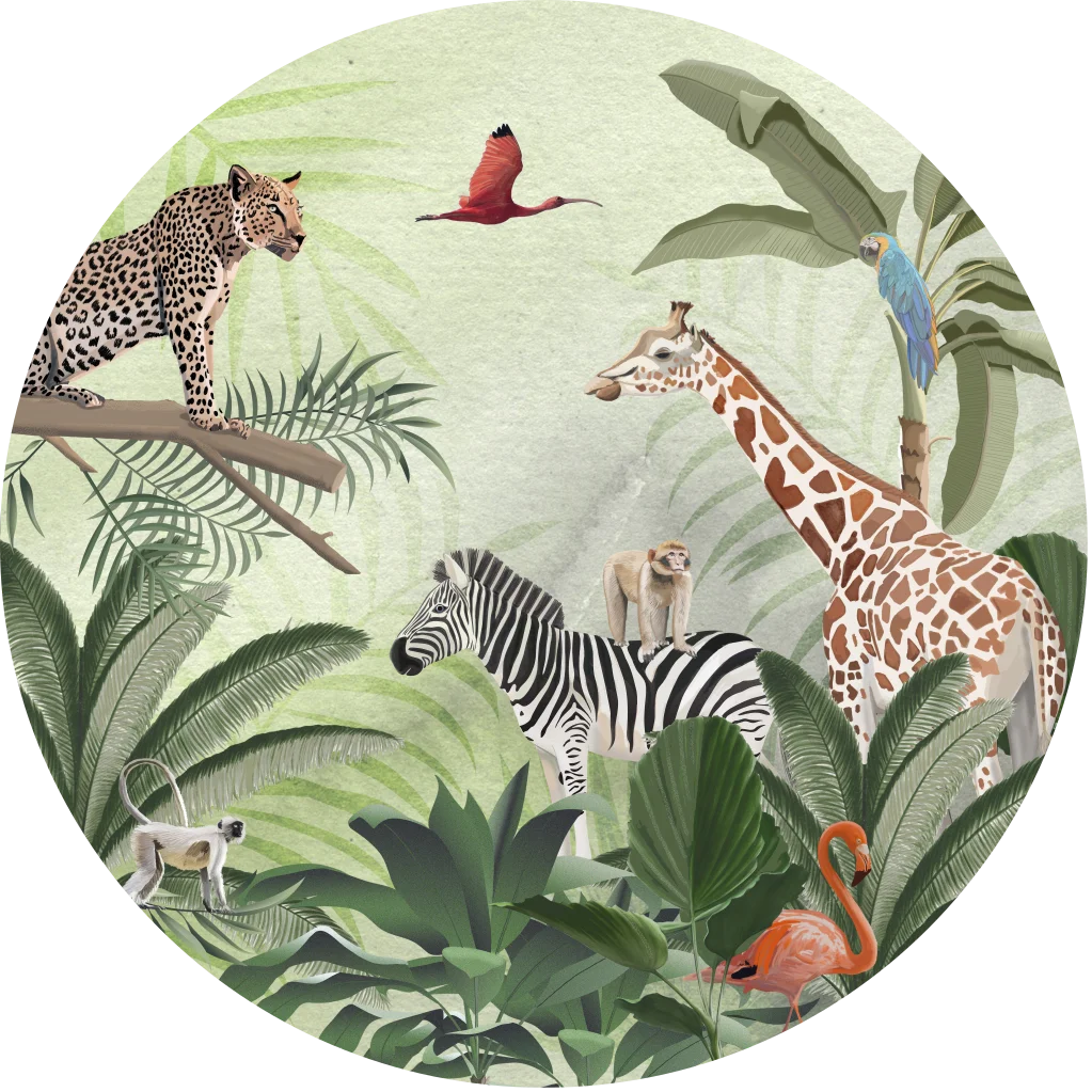 Stoere behangcirkel met prachtige illustraties van jungle dieren