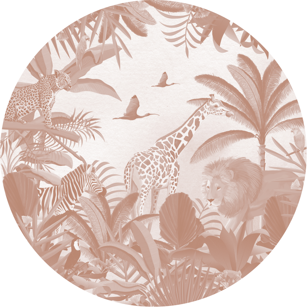 Maak de kinderkamer helemaal compleet met een behangcirkel! Deze behangcirkel heeft een jungle thema in een prachtige roestbruine kleur.