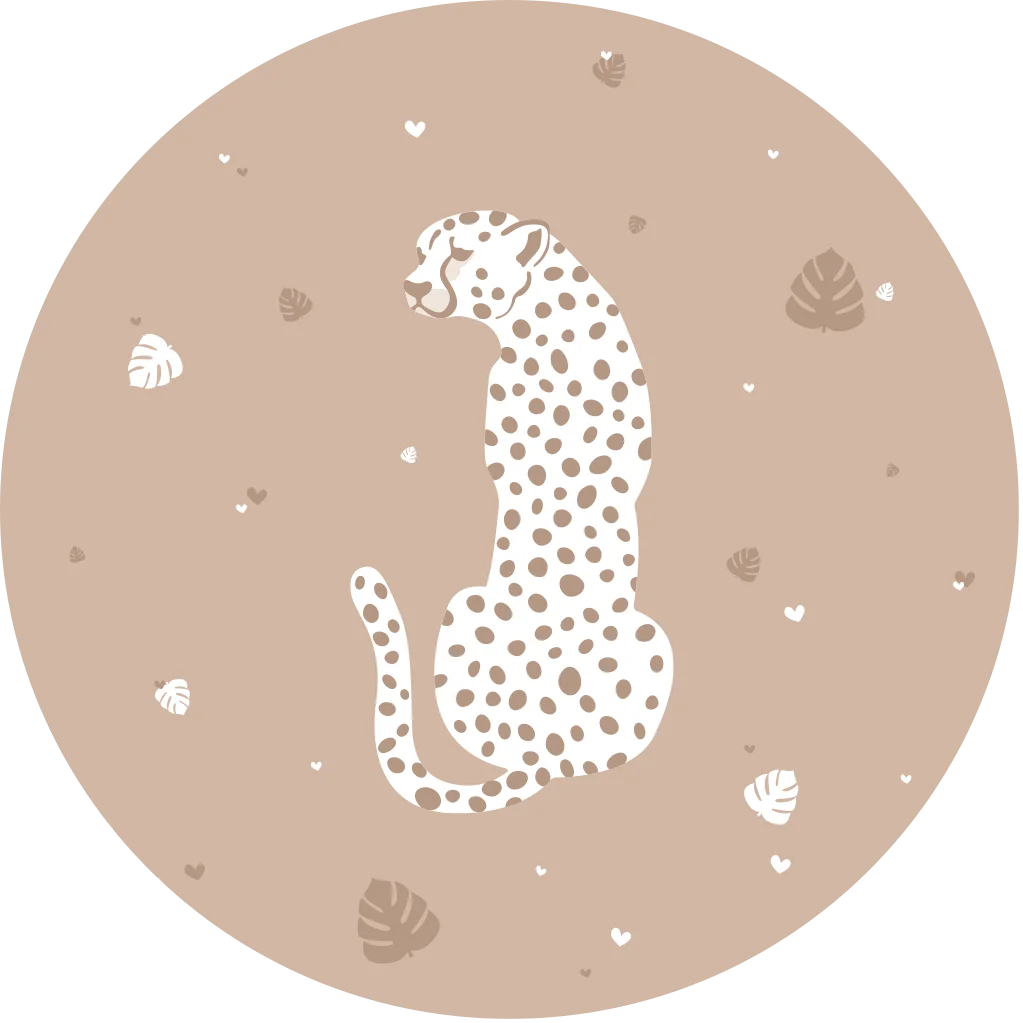 Maak de kinderkamer helemaal compleet met een behangcirkel! Een panter zit in het midden van de behangcirkel en wordt omringd door kleine bladeren.
