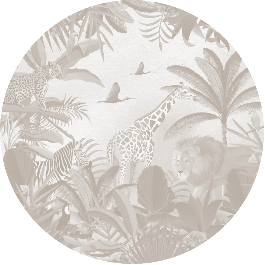 Geef de kinderkamer een persoonlijke touch met deze behangcirkel. Deze behangcirkel heeft een jungle thema met een prachtige taupe kleur.