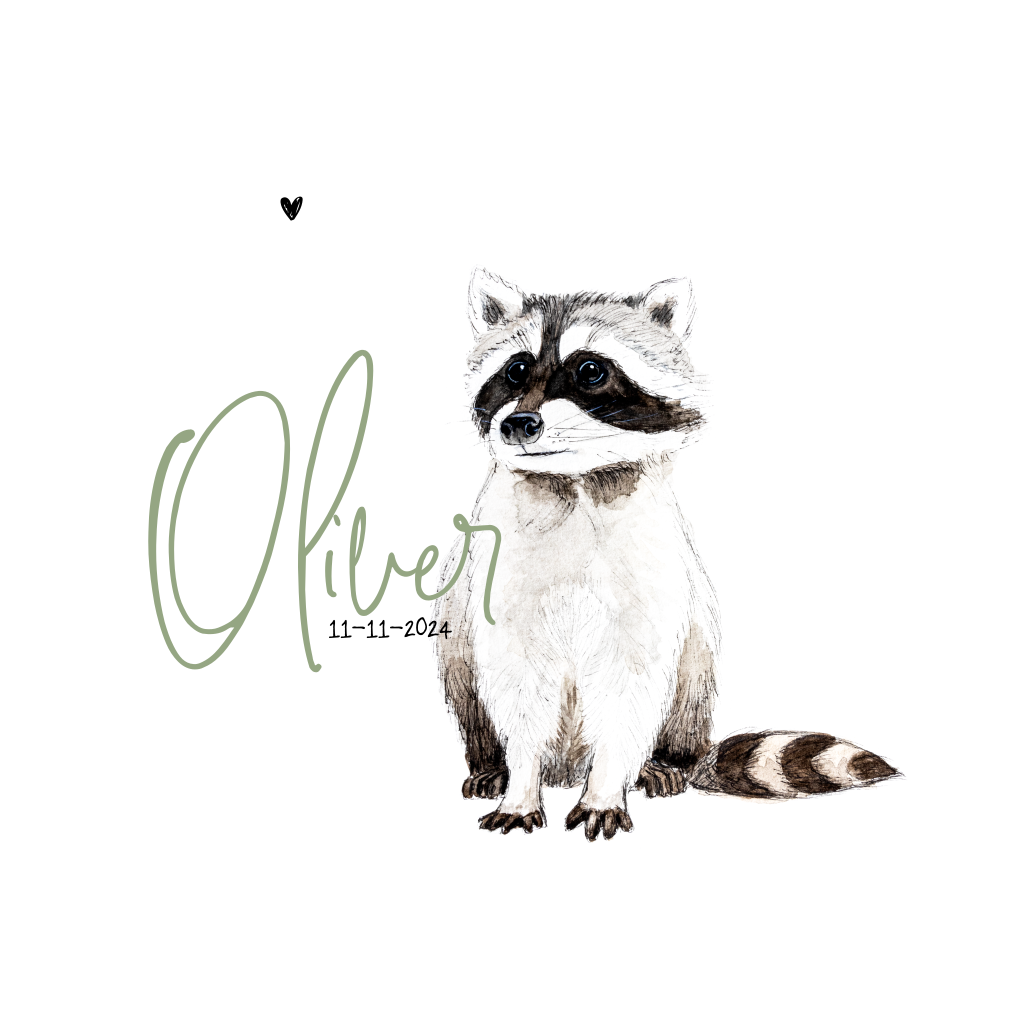 Hip geboortekaartje voor je zoontje met een watercolour schildering van een schattig wasbeertje.