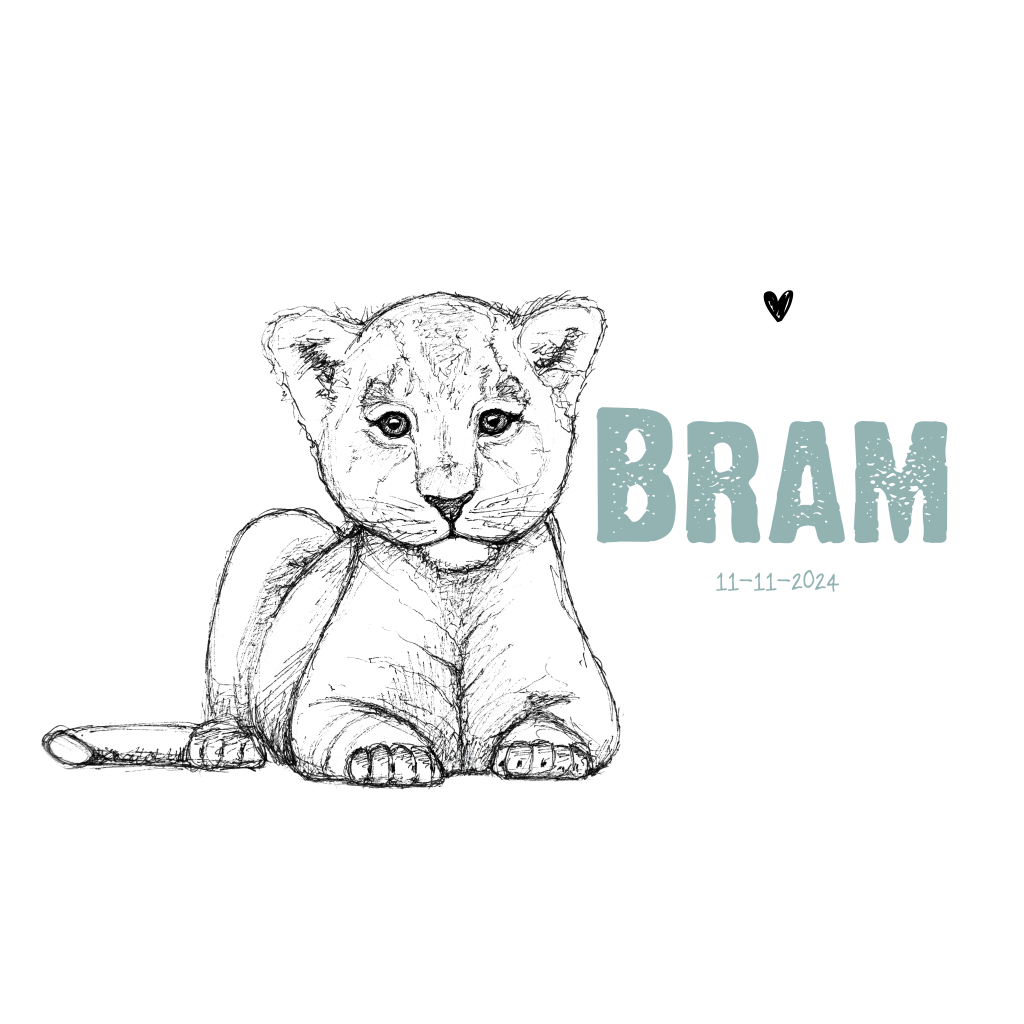 Stoer geboortekaartje met baby leeuwtje voor een jongen