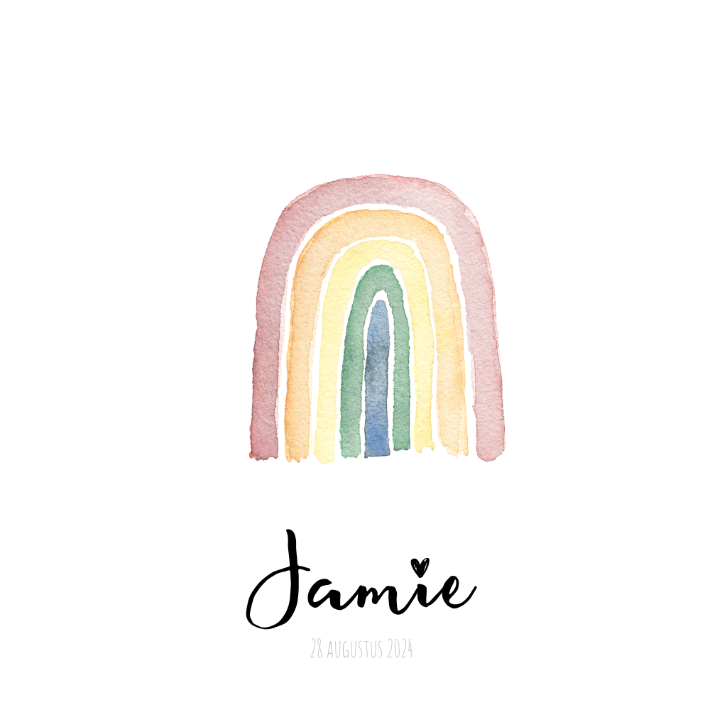Geboortekaartje met een waterverf vrolijk regenboogje