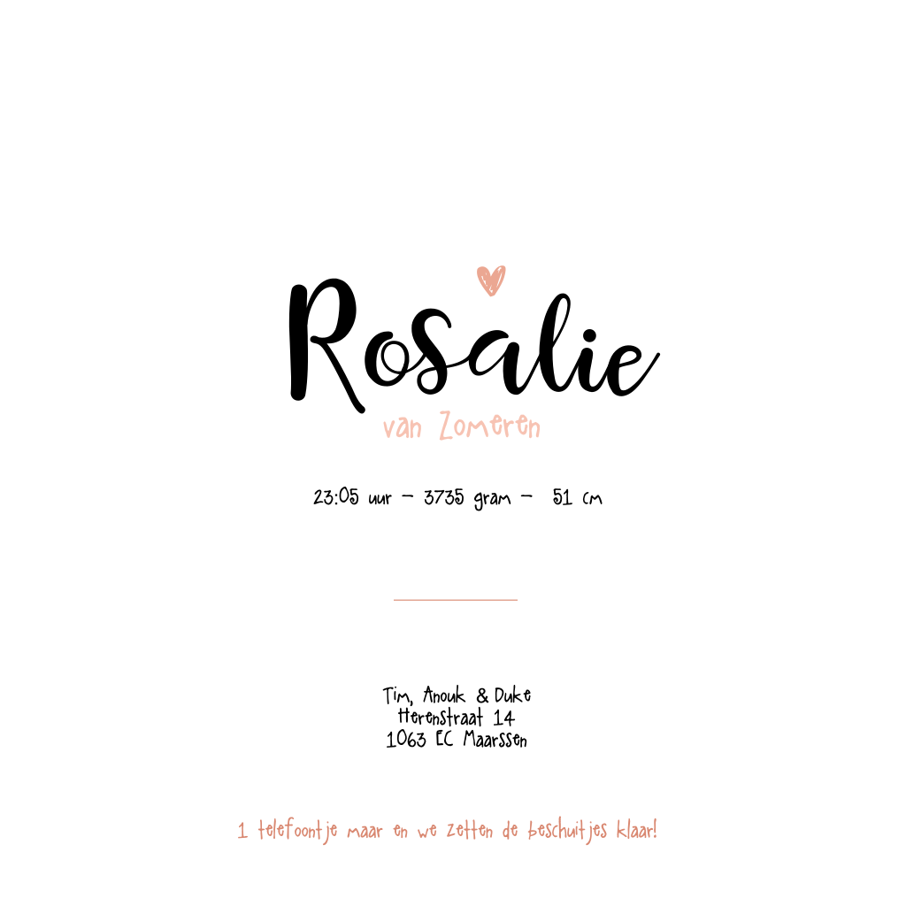 Lieve geboortekaart voor de geboorteaankondiging van je dochtertje met een prachtige pentekening van een eenden kuikentje. Verander de achtergrondkleur, lettertypes en schrijf je eigen teksten en verstuur dit hippe geboortekaartje!