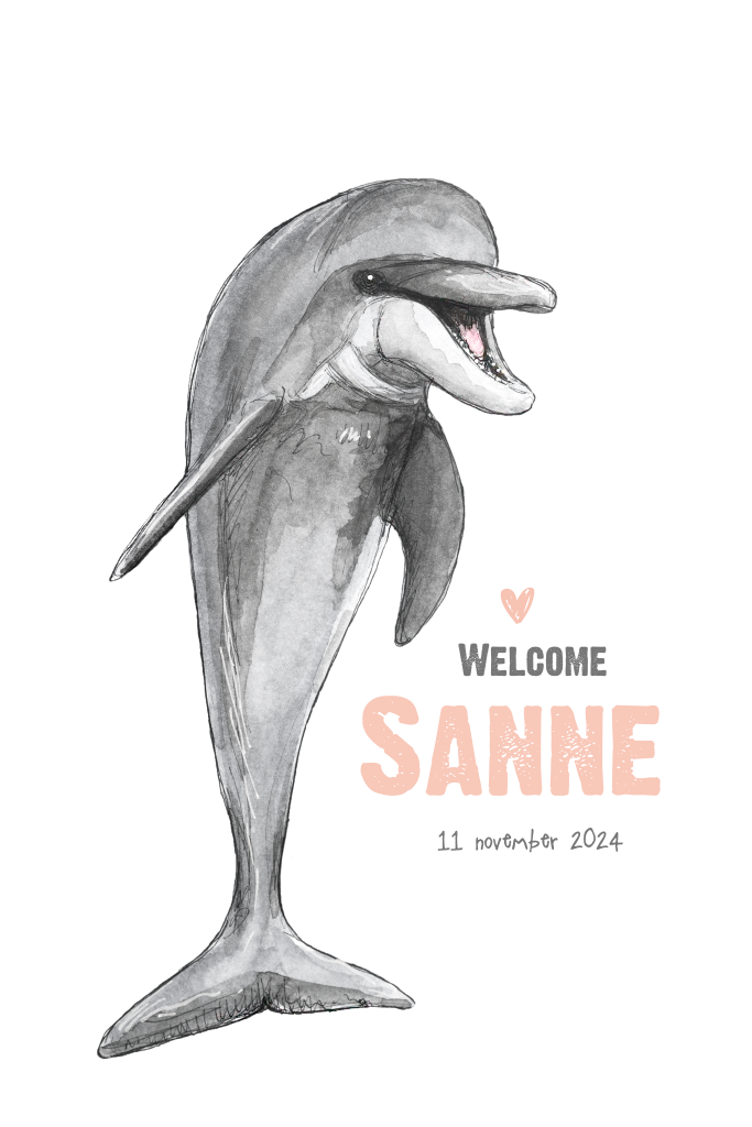 Staand dubbel geboortekaartje met Dolfijn voor meisje