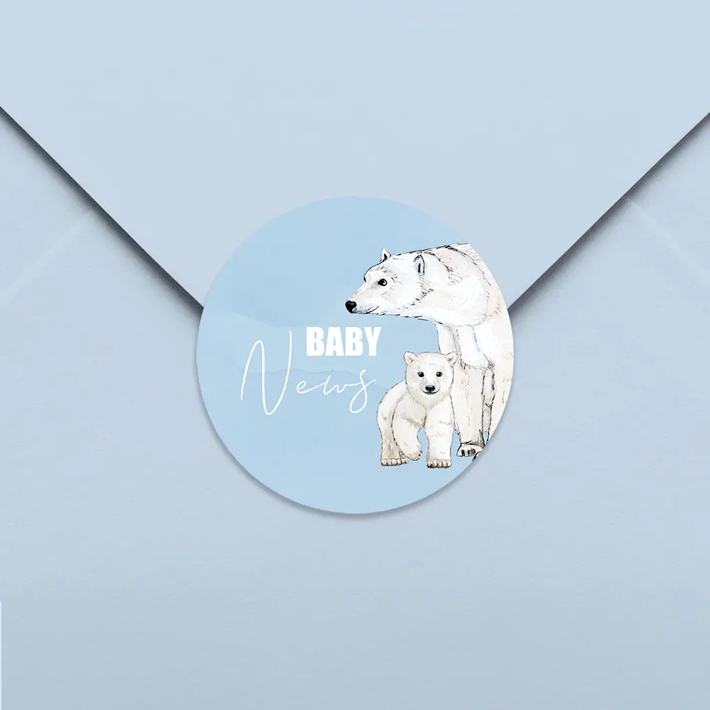 Sluitsticker in blauw met ijsberen en tekst 'baby news' - per 25 stuks