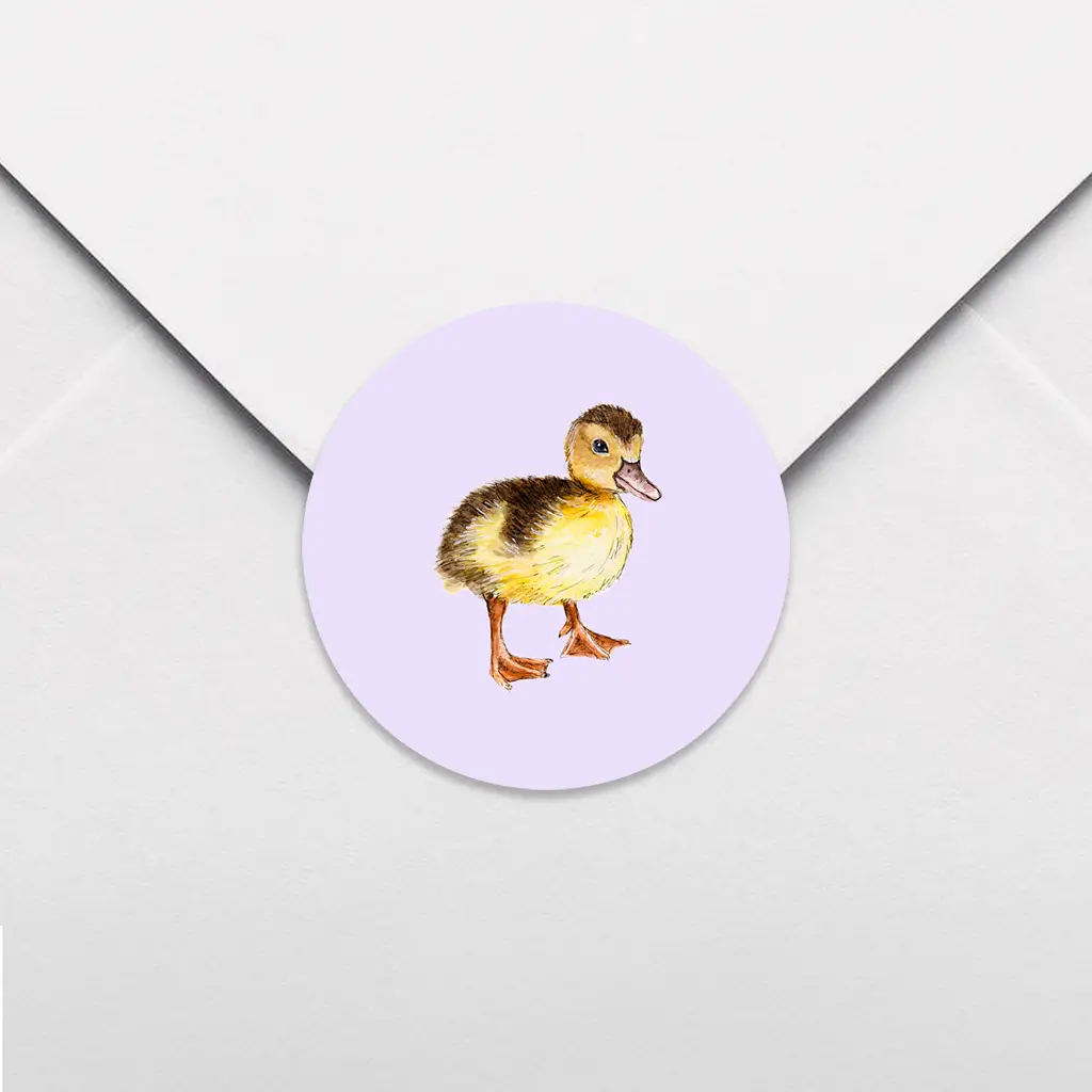 Een lieve sluitsticker met lila achtergrond. Op de sticker zie je een illustratie van een lief eendje. Wist je dat je deze sluitsticker kan personaliseren in onze online editor? De sluitstickers hebben een diameter van 35 mm en worden geleverd op vellen van 25 stuks.