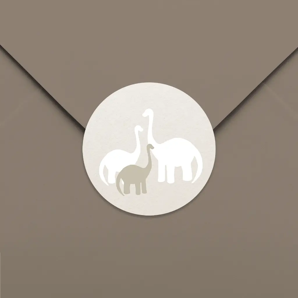 Een bijpassende sluitsticker bij het geboortekaartje van designer Bintje. Op de sluitsticker zie je de ouder dino's en de baby dino. Pas de sticker naar wens aan in onze online editor. De sluitstickers hebben een diameter van 35 mm en worden geleverd op vellen van 25 stuks.
