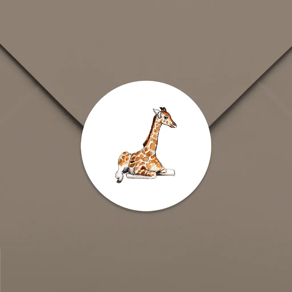Maak eenvoudig zelf een sluitsticker! Deze sticker heeft een witte achtergrond met daarop een lieve illustratie van een giraf. Met dit ontwerp kan jij volledig je creativiteit laten gaan en een eigen sluitsticker maken. De sluitstickers hebben een diameter van 35 mm en worden geleverd op vellen van 25 stuks.