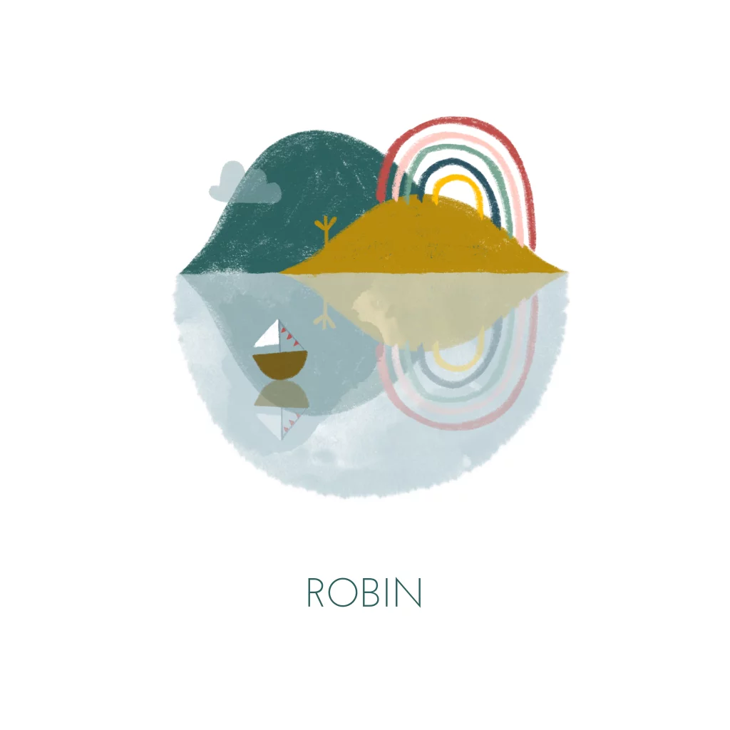 Een bootje in het water met een achtergrond van bergen en een prachtige regenboog: wat mooi! Dit illustratieve geboortekaartje is leuk voor een jongen. Combineer hem met een bijpassende envelop!