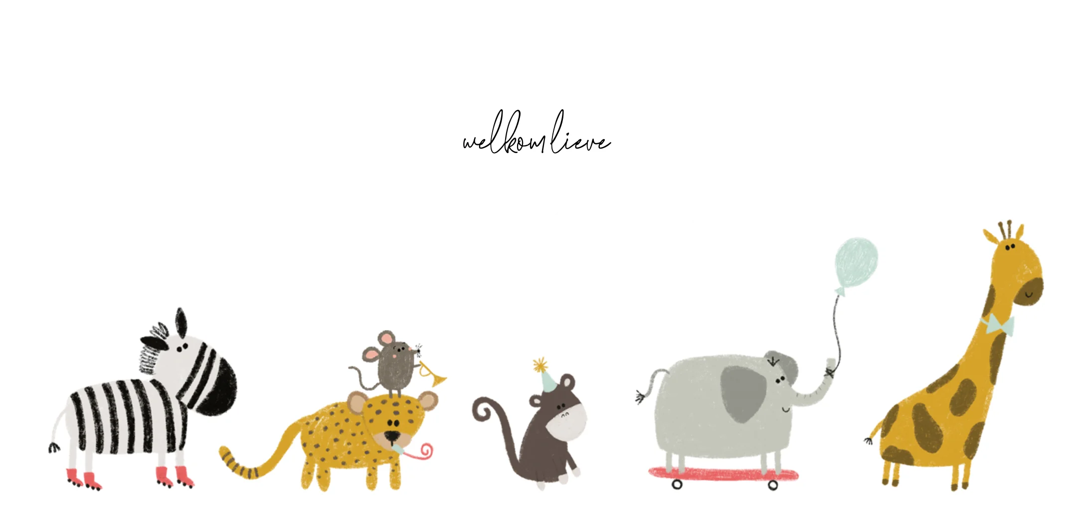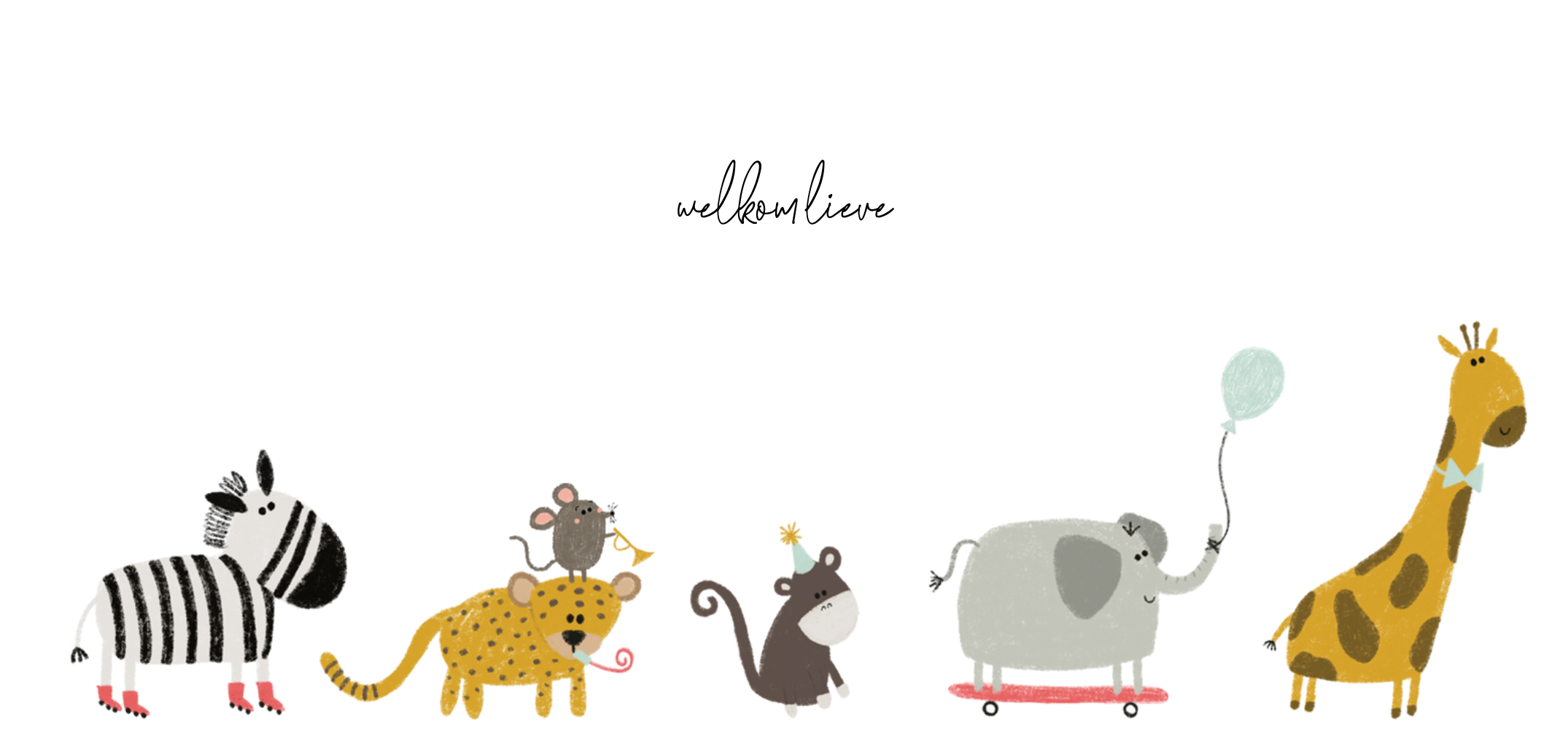 Dit is een avontuurlijk geboortekaartje voor jullie zoon of dochter. Op het kaartje zijn verschillende jungledieren te zien. Alle dieren hebben een feestelijk tintje gekregen. Dit kaartje in het echt zien? Bestel snel een proefdruk!