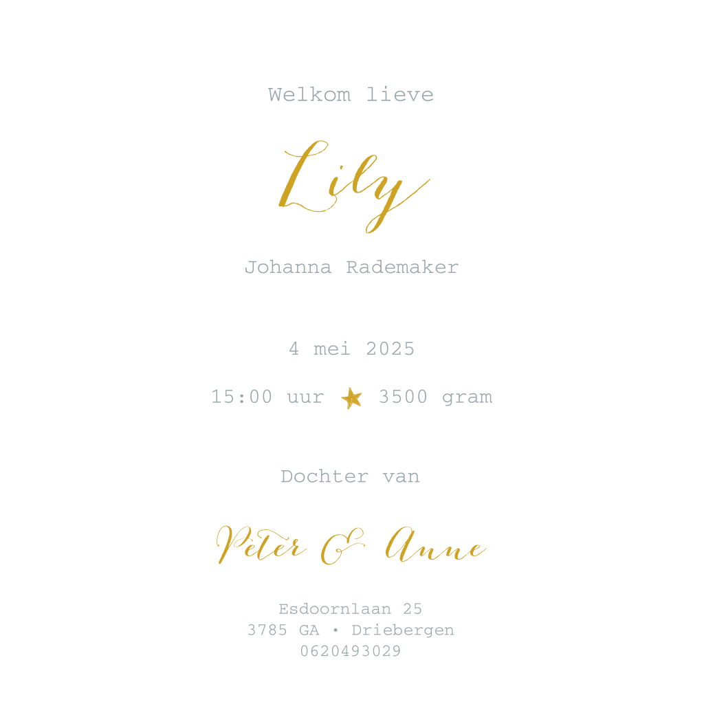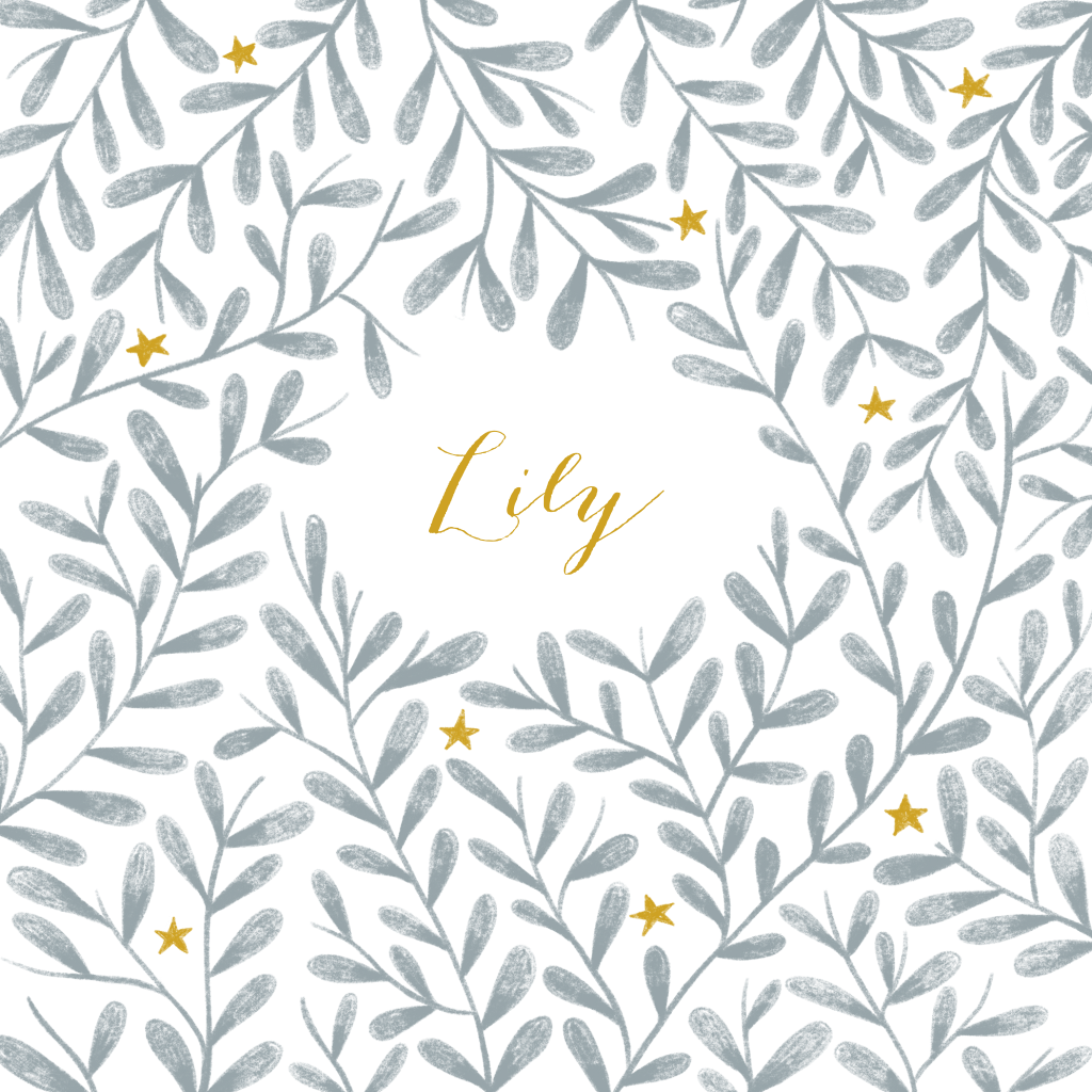 Hou jij van een geboortekaartje met een natuurlijke uitstraling? Misschien is dit botanische kaartje met sierlijke takjes en sterren iets voor jou! Teksten en kleuren van dit romantische babykaartje zijn naar wens aan te passen.