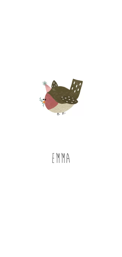 Een eenvoudig babykaartje met een illustratie van een lief roodborstje. Leuk voor de geboorte-aankondiging van een meisje! Teksten en lettertypes kun je naar wens aanpassen.